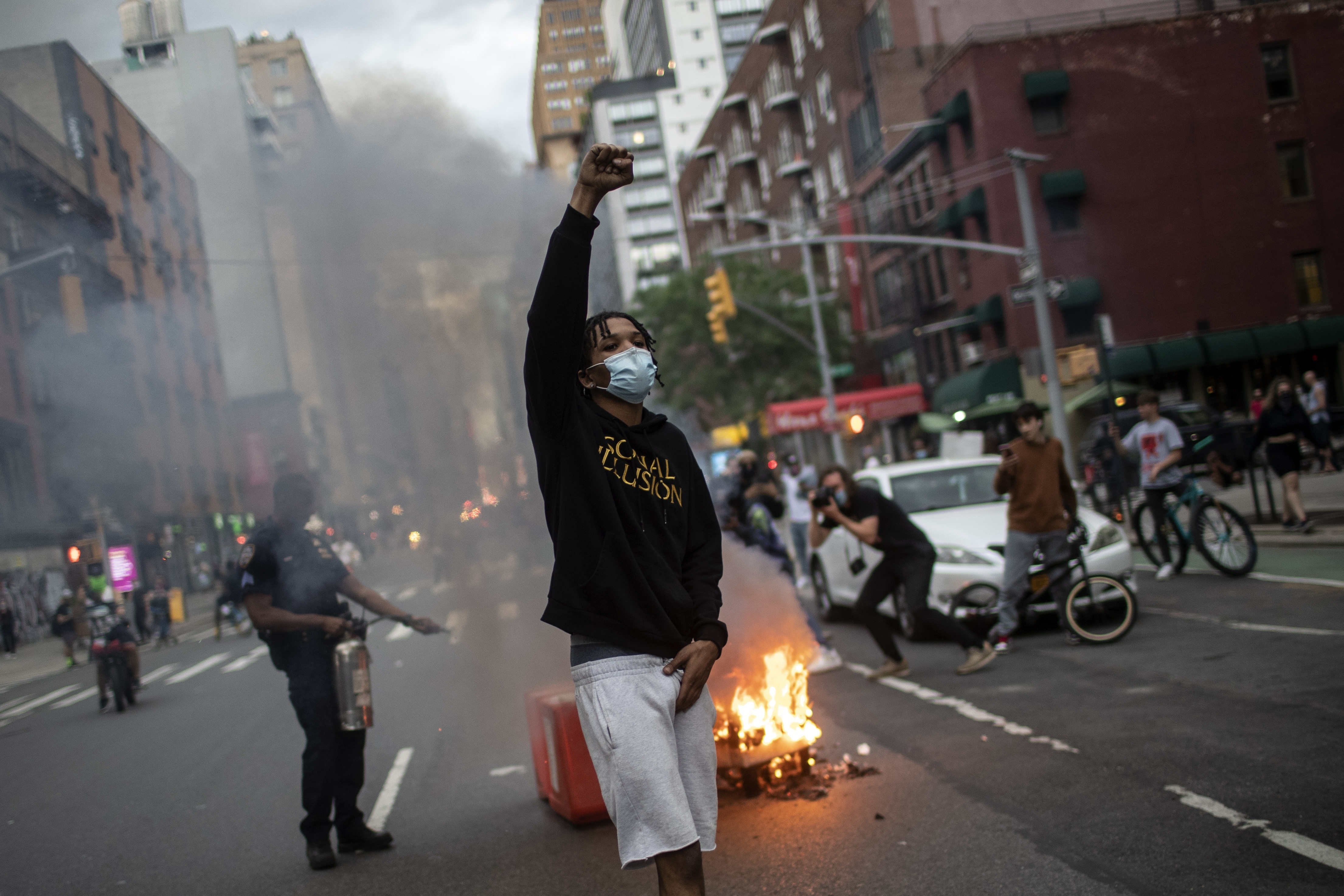 In Washington, President Donald Trump sent tweets ridiculing protesters outside the White House who were among thousands nationwide incited by the death of Floyd, who died after a policeman pressed his knee onto his neck for more than eight minutes.