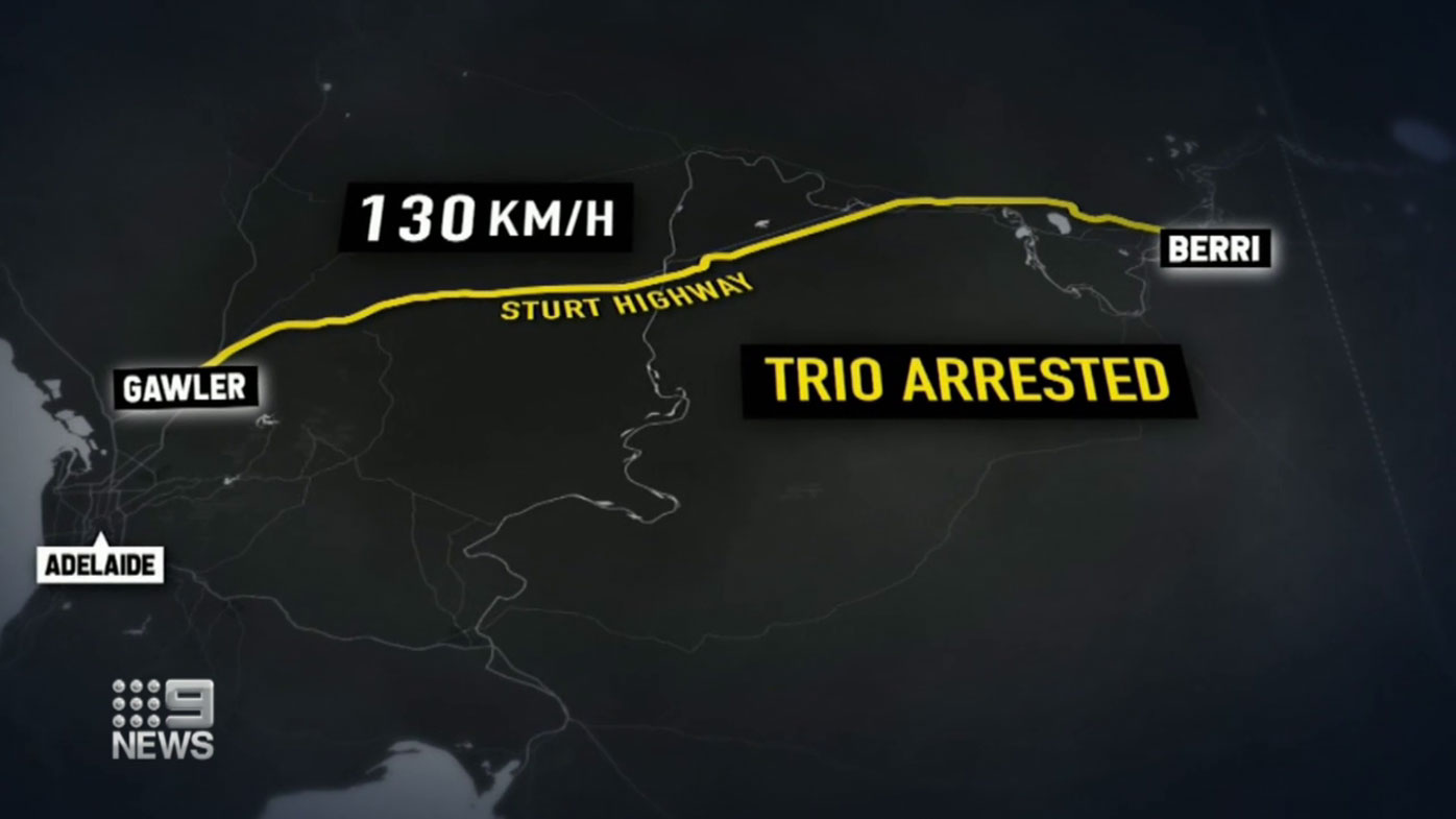 Police meanwhile monitored the allegedly stolen car, which eventually stopped at 4.15am on Philips Road at Berri, approximately 200km from the location of the alleged assault.