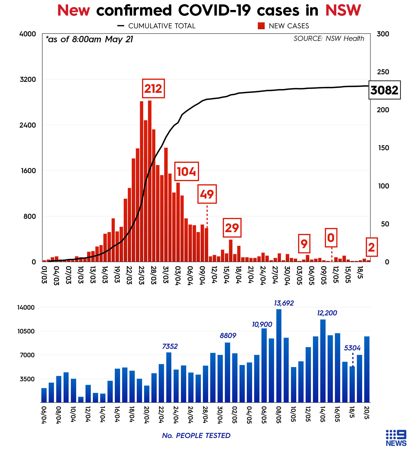 It comes as just two new cases of coronavirus were detected in the state in the past 24 hours after 9700 people were tested for the virus.