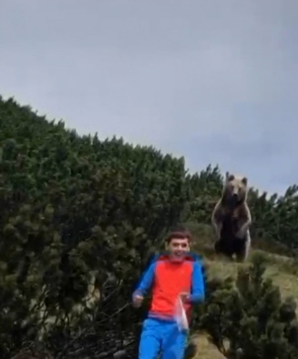 An Italian family's mountain hike took a hair-raising turn after a brown bear followed a child down a mountain path during a day out.