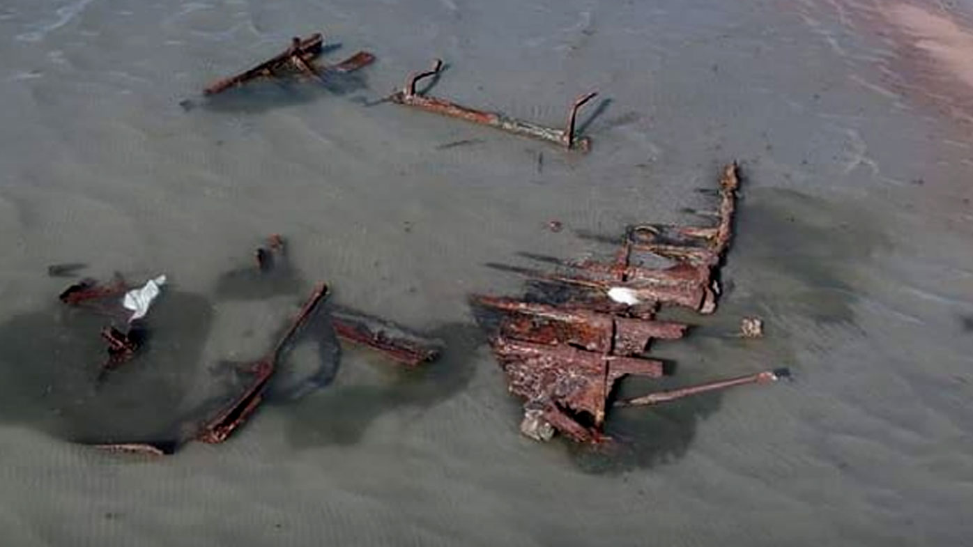 The remains of the ship surfaced just metres from the shore and attracted large crowds.