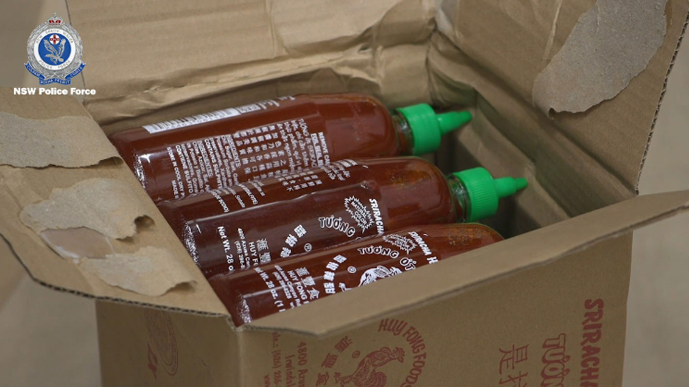 In October last year, border force officers targeted an air cargo consignment of sriracha chilli sauce from the United States, with presumptive testing returning a positive indicator for methylamphetamine.