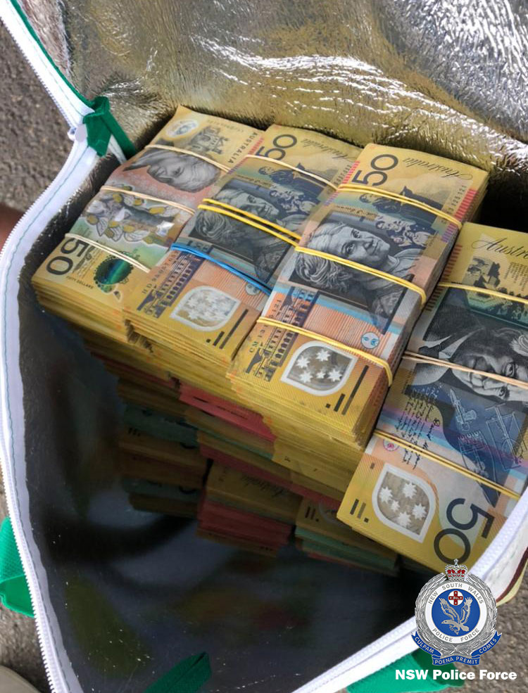 A further AUD$500,000 cash was found inside a cooler bag in the boot of the vehicle, while a search of a home at Sans Souci uncovered documentation.