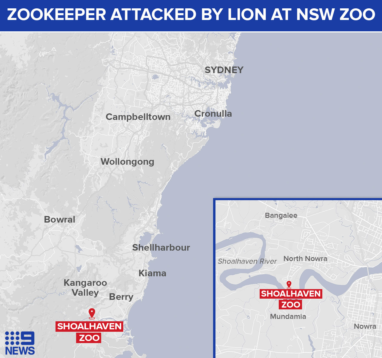 A female zookeeper is in serious condition after being attacked by a lion at a NSW zoo.