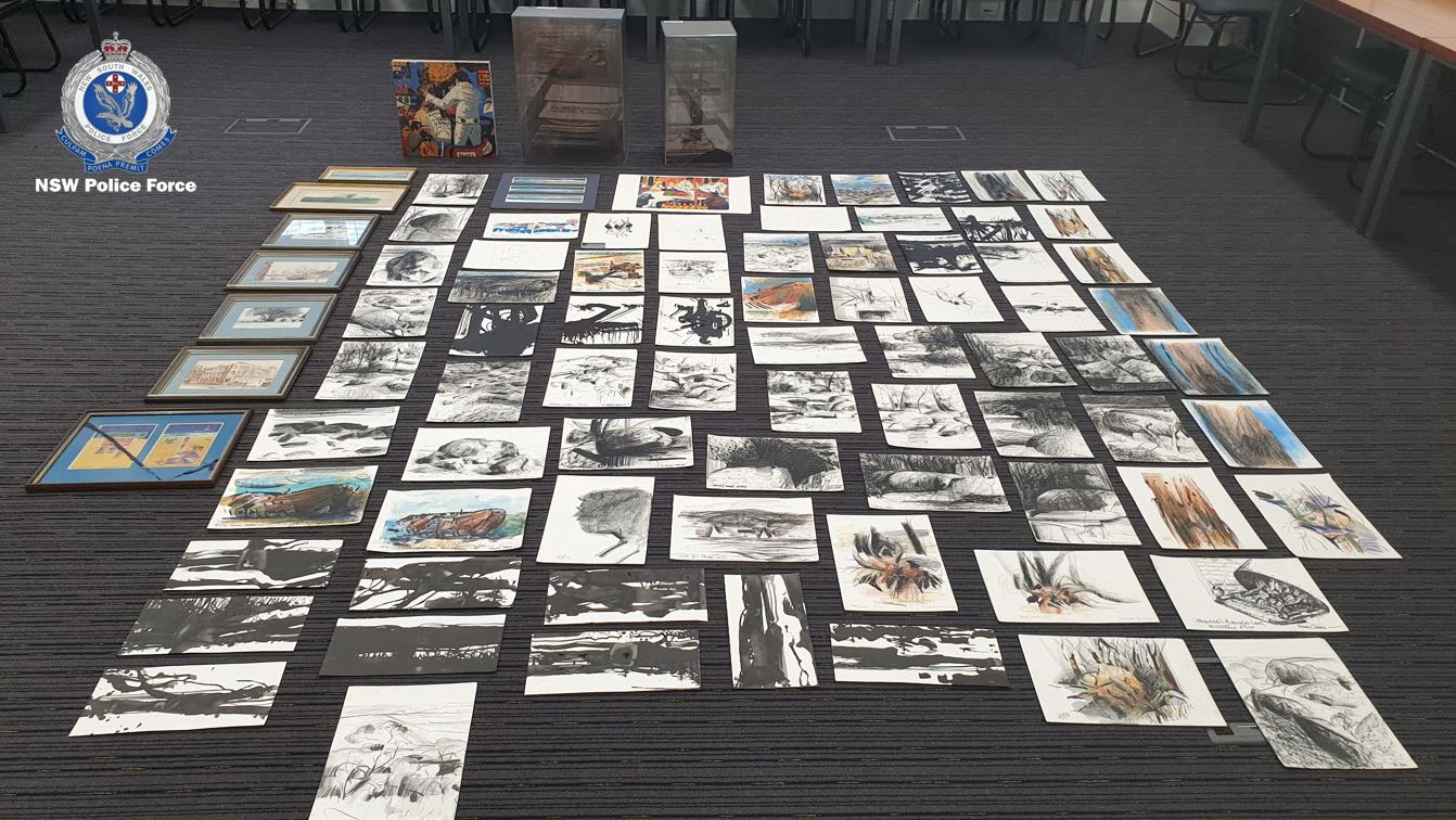 During a search of a unit in Maitland on Thursday, police seized 87 artworks valued at more than $160,000 in total.