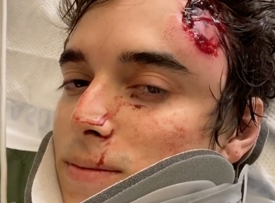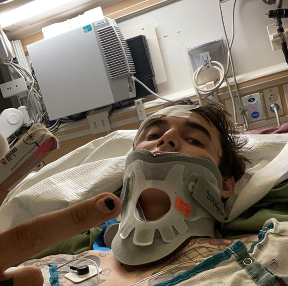 "They had to put seven staples in my head because my skull was showing from the front. And then after that, they did a CAT scan on my head and my brain was bleeding."