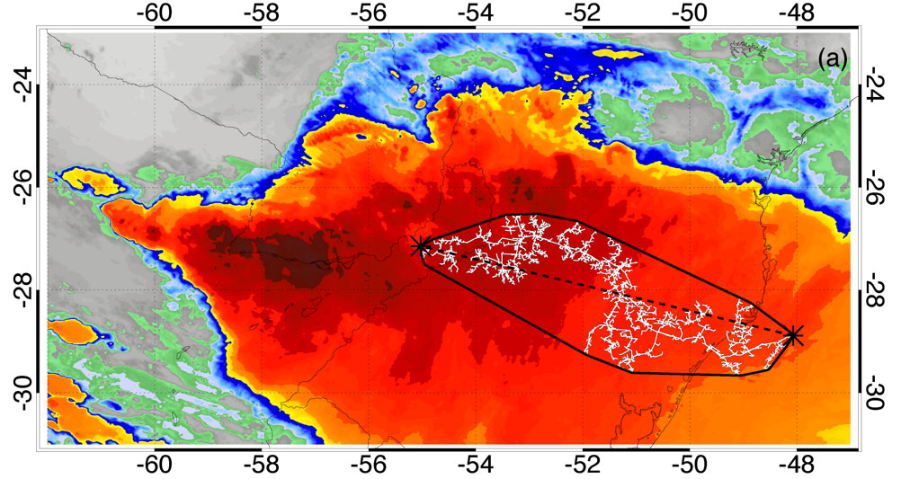 A lightning flash that stretched from Argentina across Brazil all the way to the Atlantic Ocean is the longest in recorded history.