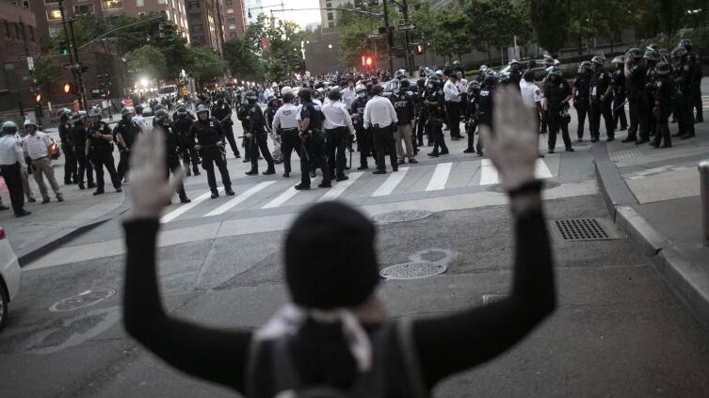 In some locations, officers started ordering people to move along, and began taking people into custody.