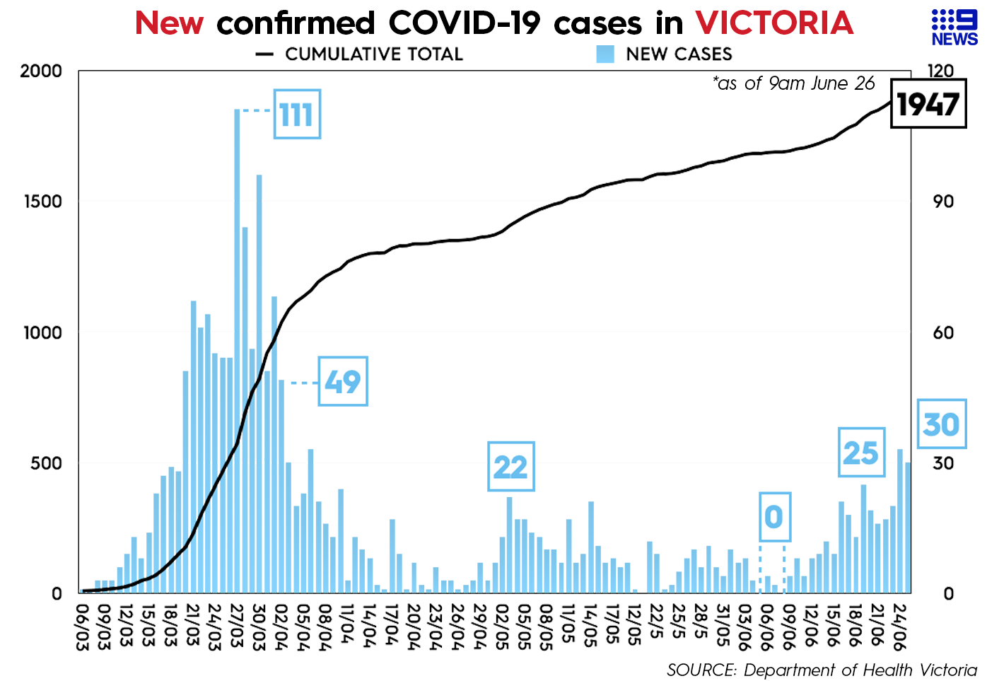 Just four of the new cases have been linked to known outbreaks, with the source of infection still under investigation in the remaining 45.