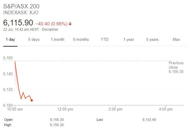 Despite the optimism in local currency the benchmark S&P/ASX 200 fell heavily upon opening, plummeting 0.75 per cent in the first 20 minutes of trade to 6109.9 points.