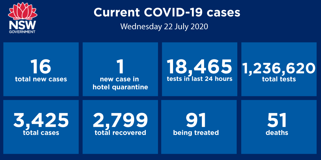 New South Wales has recorded 16 new cases of COVID-19 in the past 24 hours.
