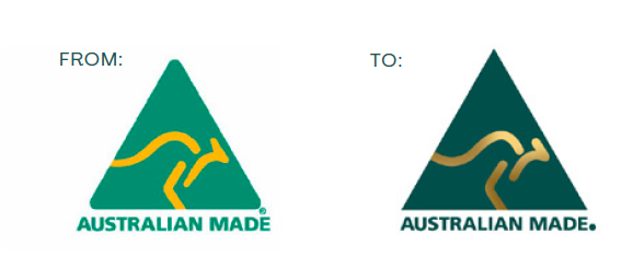 While the Australian Made logo remains, the colour palette will be changed from green and yellow to reflect the deeper gold used in the new wattle logo.