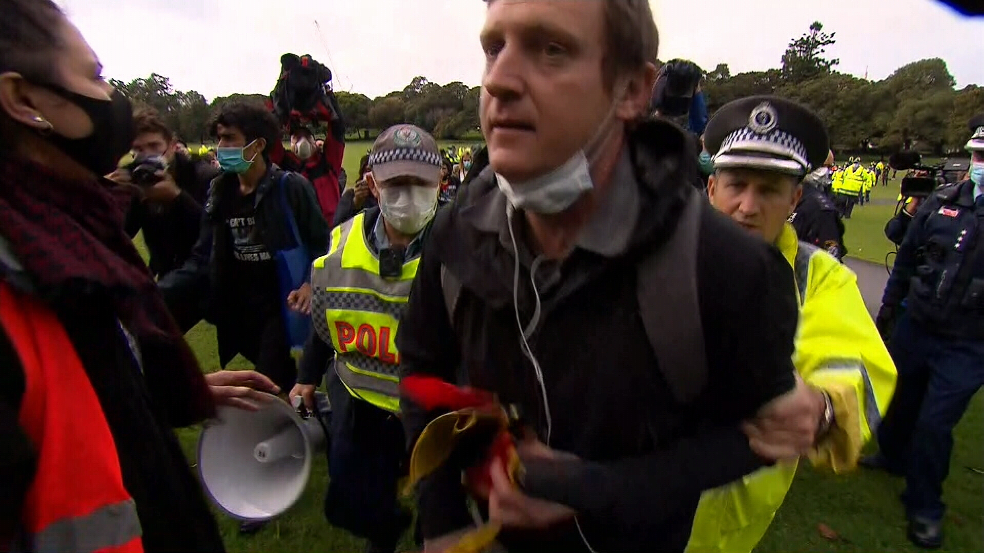 "You are in breach of the public health order by congregating in the Domain in a group of more than 20 people," police said over a loudspeaker before the arrests.