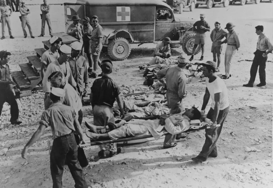 Survivors recount the dead and wounded - seeping blood into the ocean - were the first to be taken by the predators. The aggressive oceanic white tip shark – native to the area – killed many.