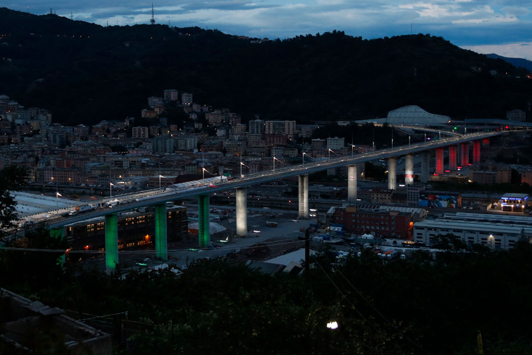 Two years ago this month, a stretch of the Morandi Bridge suddenly gave way in a violent rainstorm, sending vehicles plunging to the dry riverbed below. The new structure — a key artery for the northwestern Italian port city — was erected thanks to round-the-clock construction, even during the COVID-19 pandemic.