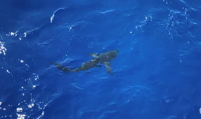 After reviewing video footage, the USCGC said it believes the shark was a Long-Fin Mako or Pelagic Thresher shark, "not something to mess with".
