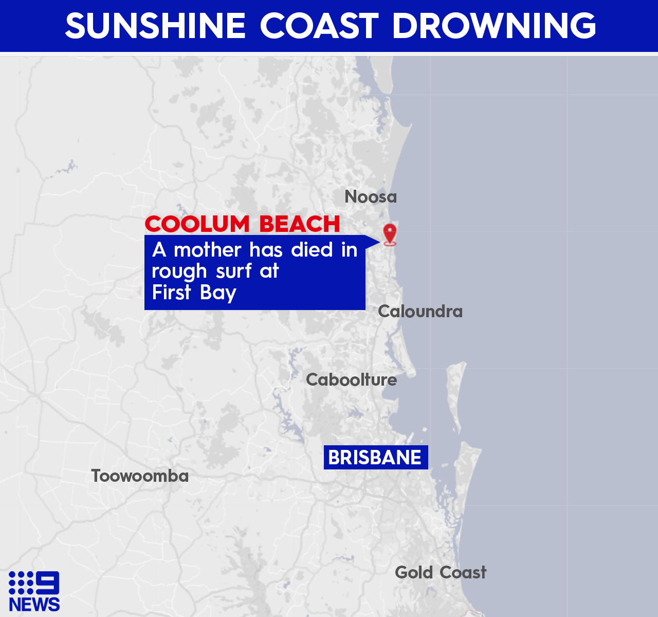 A Queensland mother has drowned while swimming with her daughter at an unpatrolled beach south of Coolum on the Sunshine Coast this morning.