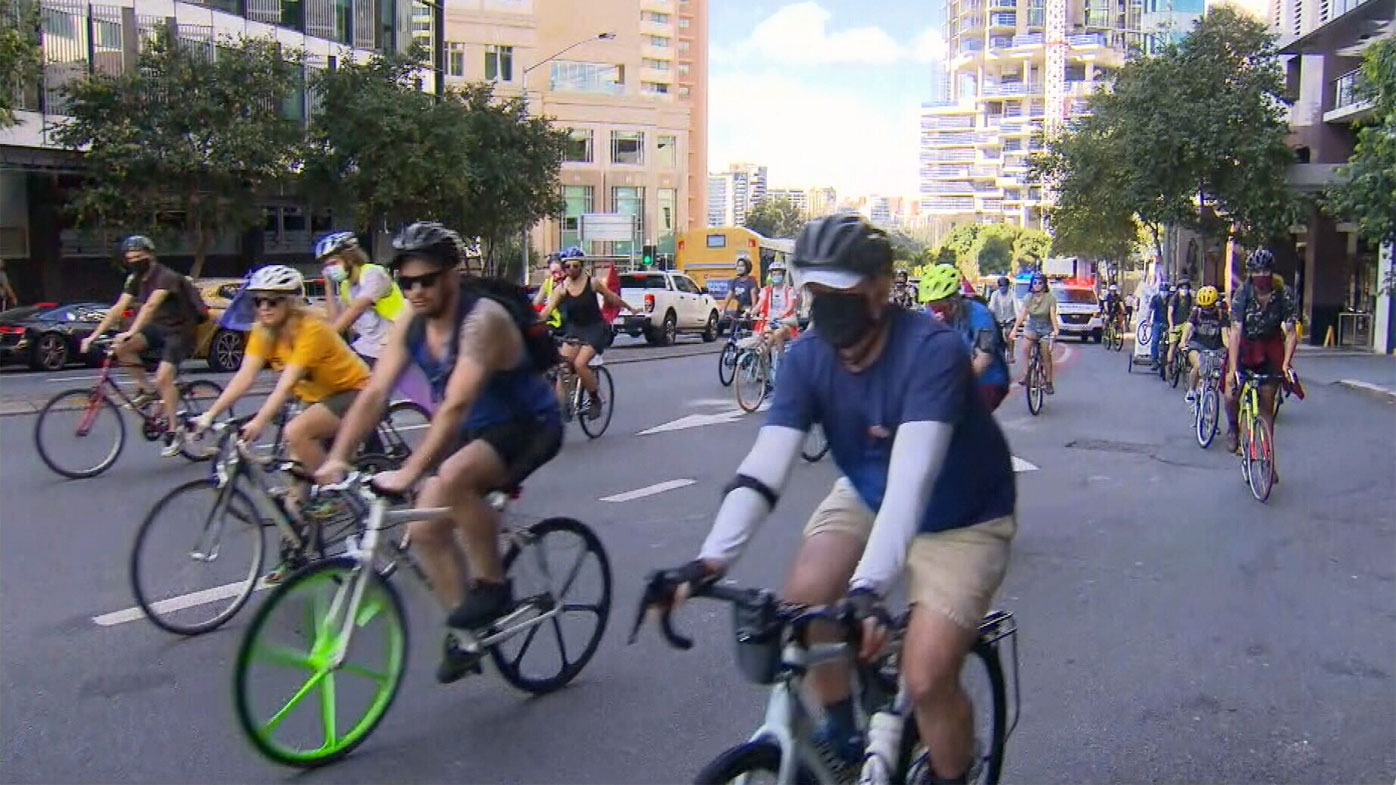 Extension Rebellion protesters have been riding slowly through the Brisbane CBD, with the intention of causing as much traffic disruption as possible.