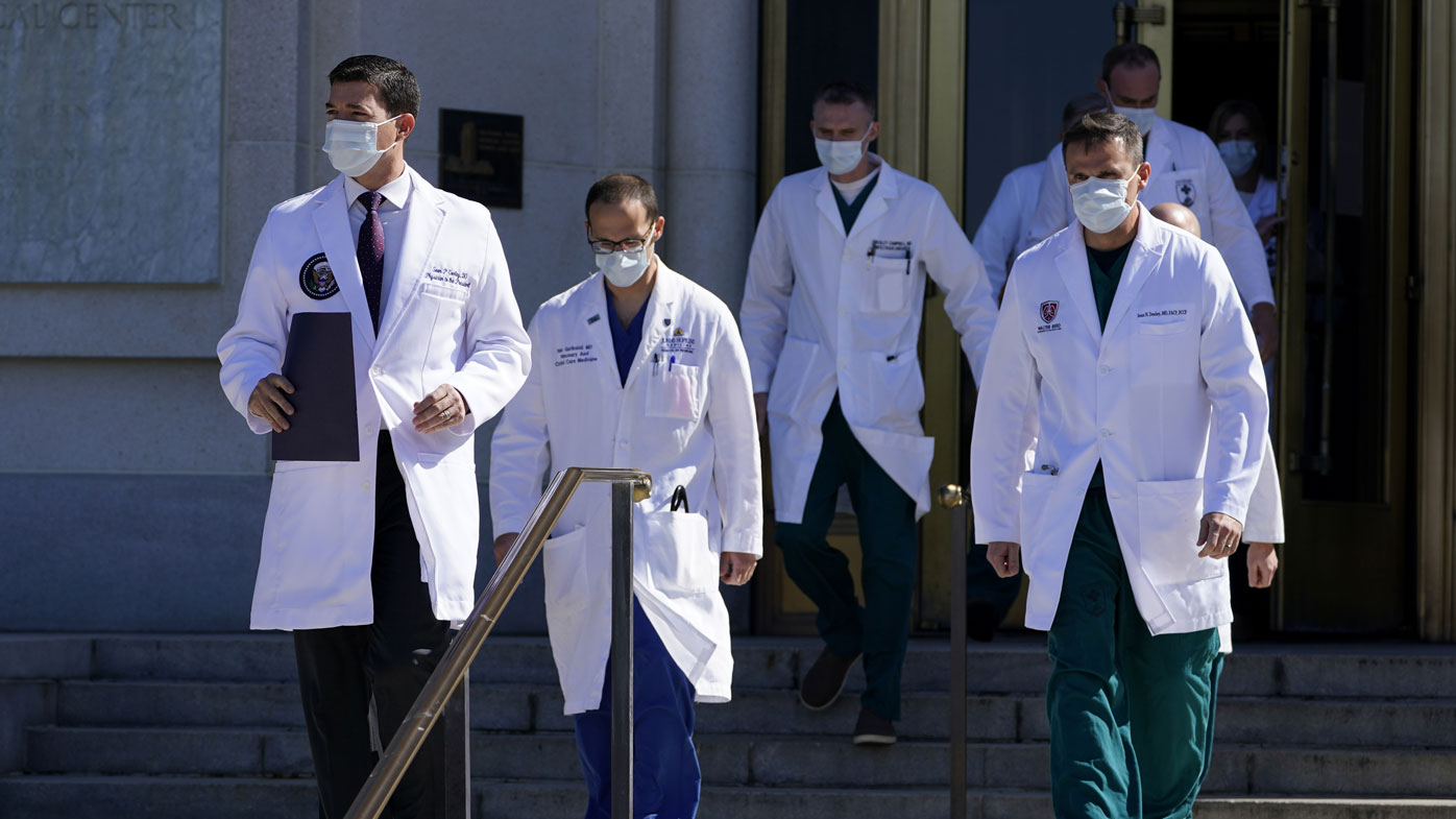 His chief of staff earlier revealed Mr Trump had gone through a "very concerning" period Friday and faces a "critical" next two days in his fight against COVID-19 at a military hospital — in contrast to a rosier assessment moments earlier by Trump doctors, who took pains not to reveal the president had received supplemental oxygen at the White House before his hospital admission.