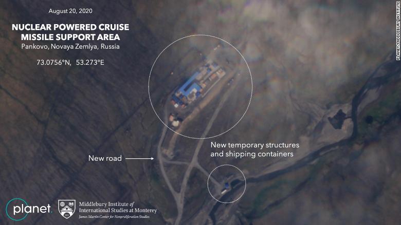 The images, captured by Planet Labs in September, show high levels of activity at a site known as Pankovo, previously used by Russia to test its Burevestnik nuclear-powered cruise missile, according to Michael Duitsman and Jeffrey Lewis, researchers at the Middlebury Institute of International Studies.
