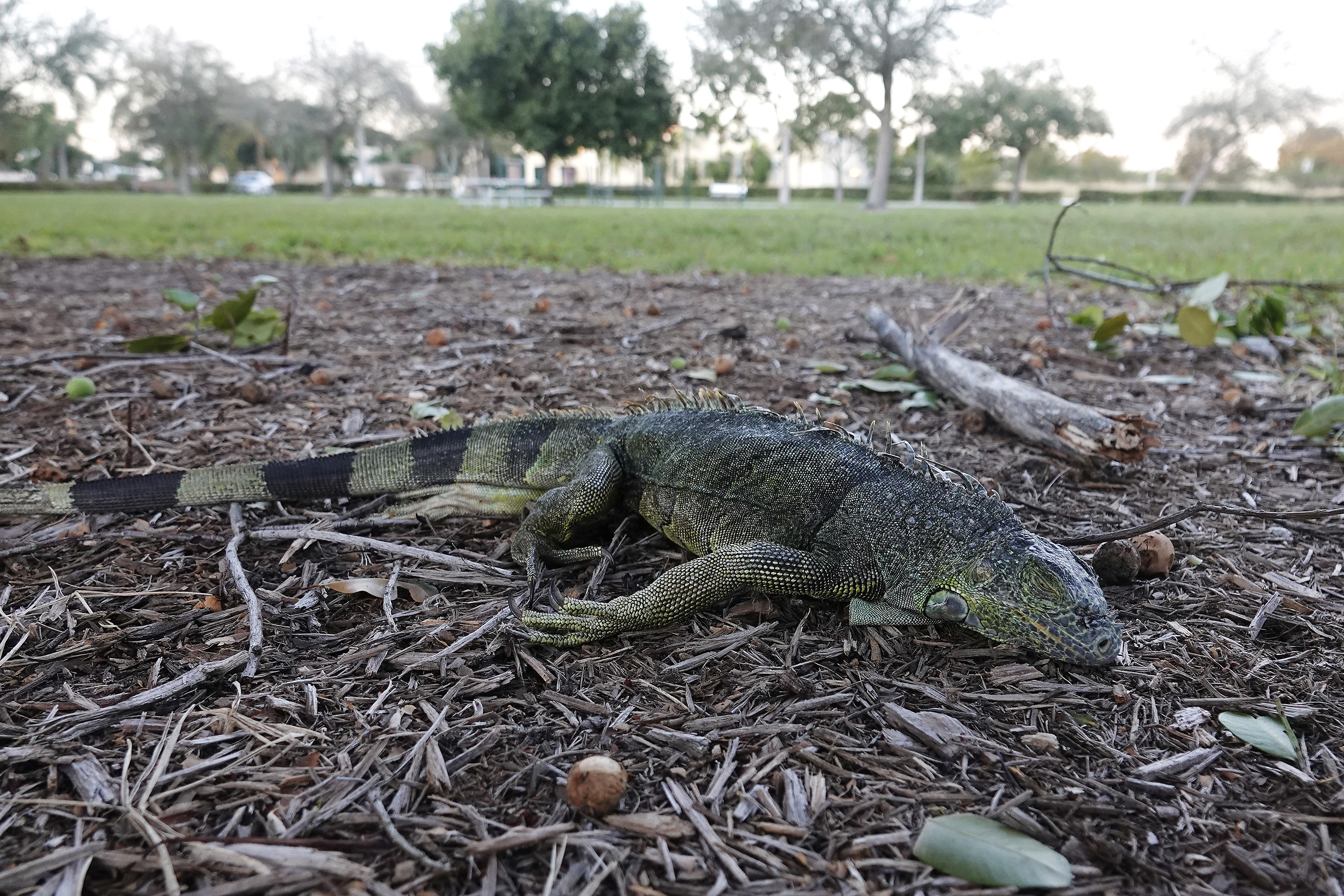 The lowest temperatures in a decade stunned and immobilised the iguanas, a species of herbivorous lizard, causing them to lose their grip from their usually safe perches in trees.
