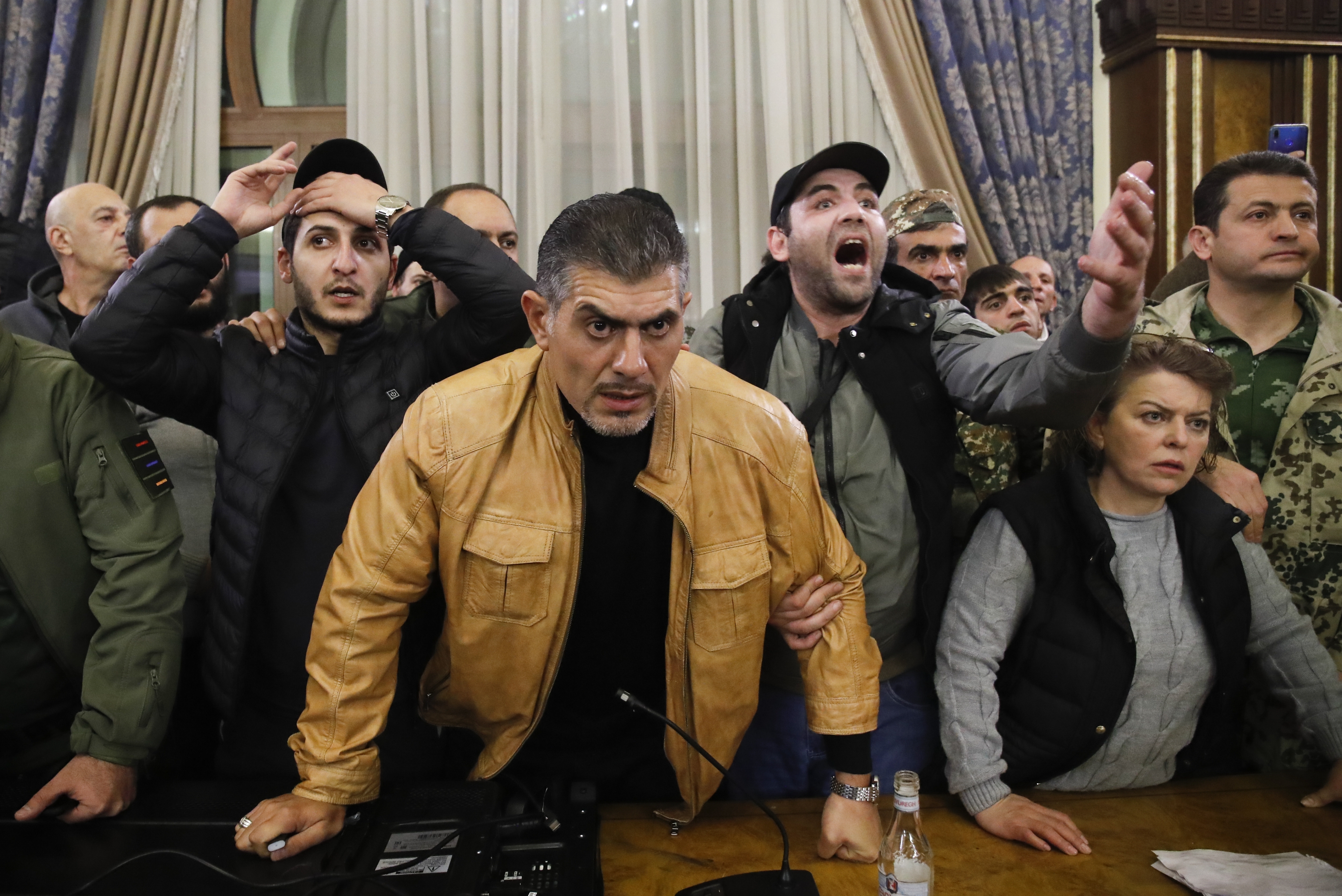 Some of them broke into the main government building, saying they were searching for Pashinian, who apparently had already departed.