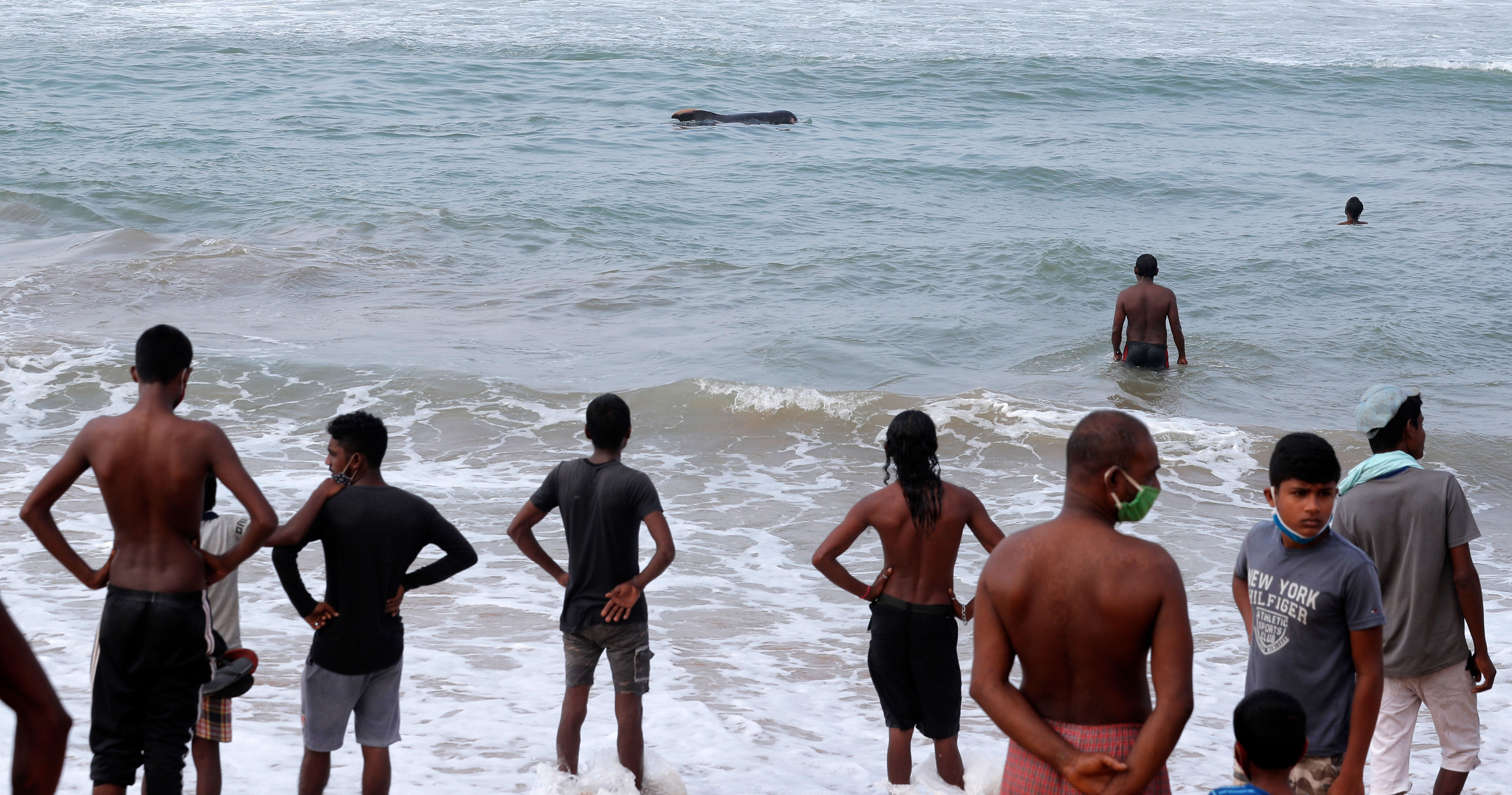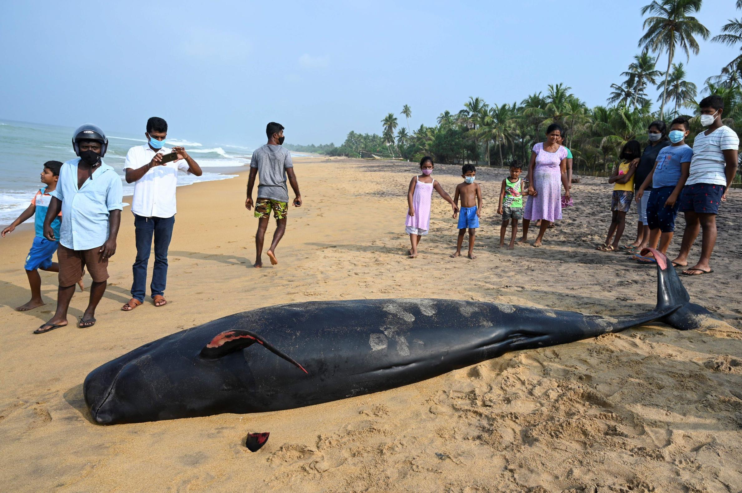 Locals joined officials from Sri Lanka's navy and coast guard in tending to the whales.