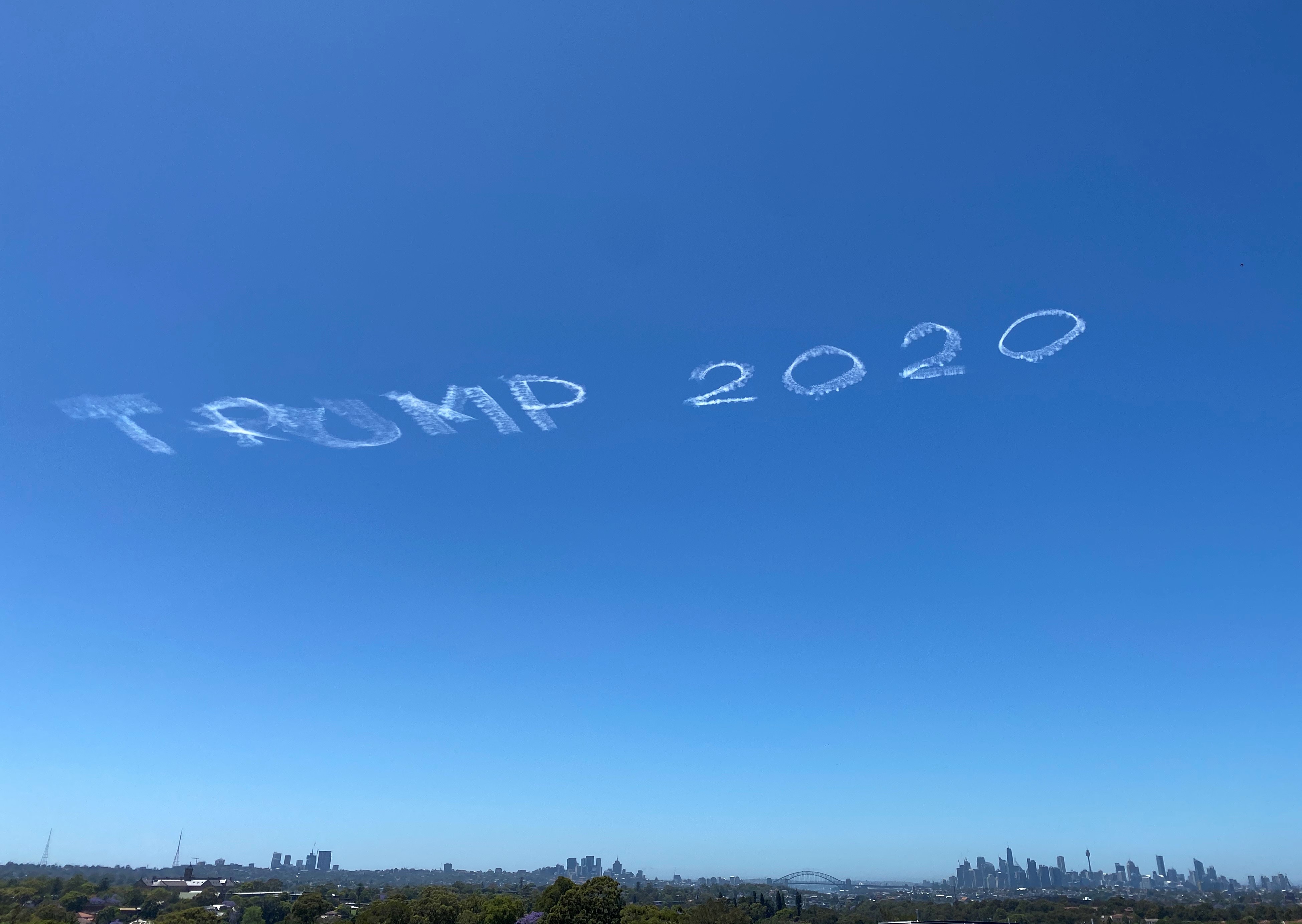 The words 'TRUMP 2020' have been emblazoned across the Sydney skyline as, on the other side of the world, pro-Trump rallies build across the US.