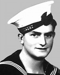Navy records show that, although he was wounded in the chest and back, he managed to shoot down one bomber and keep other aircraft away from his comrades in the water.