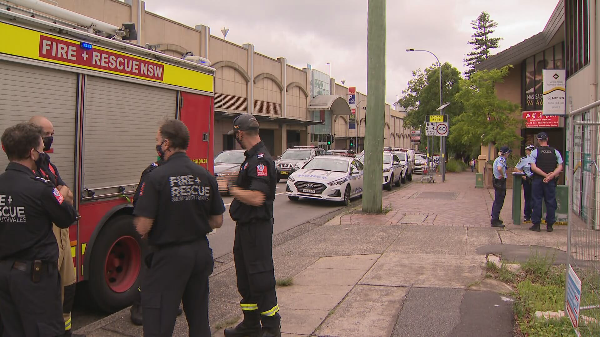 Around 12.30pm today emergency services were called to a small shopping centre on Edgeworth David Avenue in Hornsby.