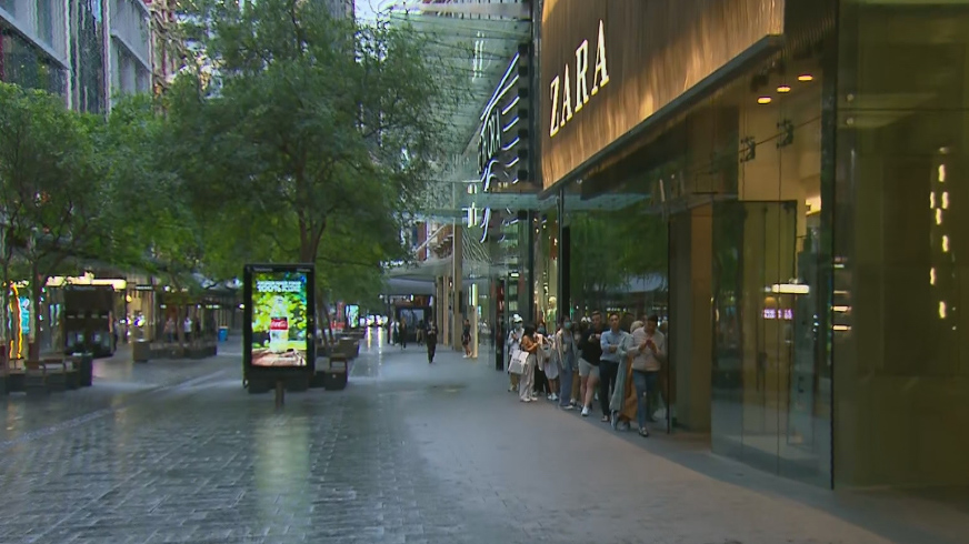 A small crowd waited for fashion shop Zara to open, with a small amount of shoppers turning up as the rest of the Pitt Street Mall started to open.