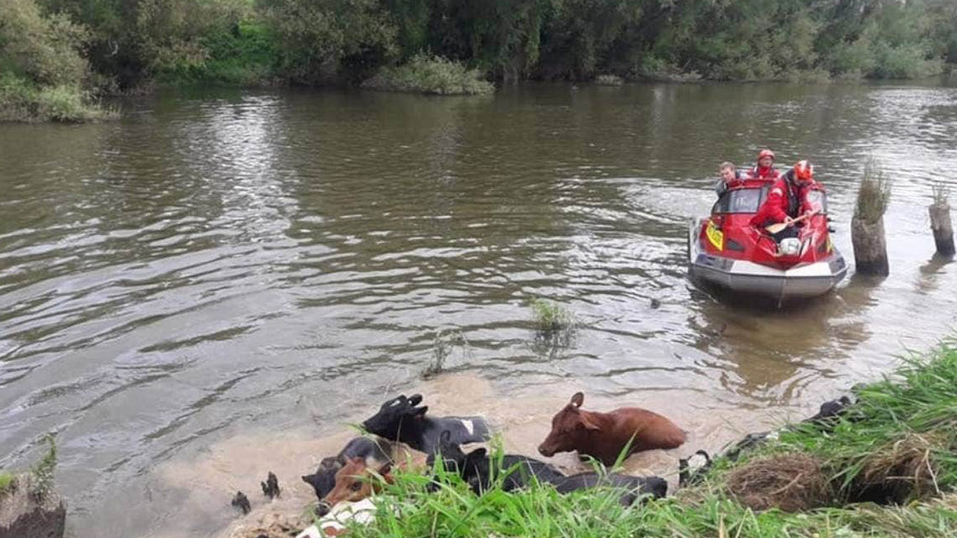 With the Ngāruawāhia jet ski and Huntly rescue boat on hand, crews herded the cattle up onto the bank.