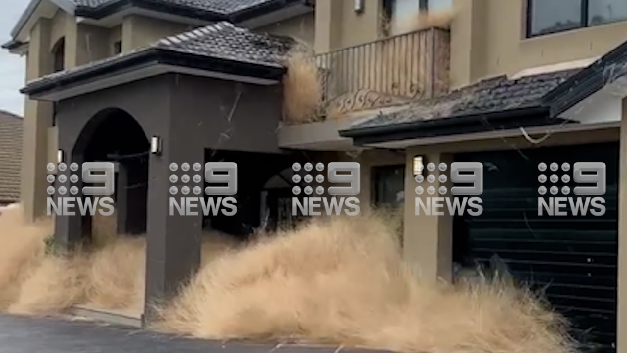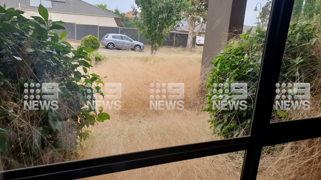 A Melbourne housing estate has been overrun with tumbleweeds, forcing residents to stay indoors as the bizarre phenomenon sweeps through suburban streets.