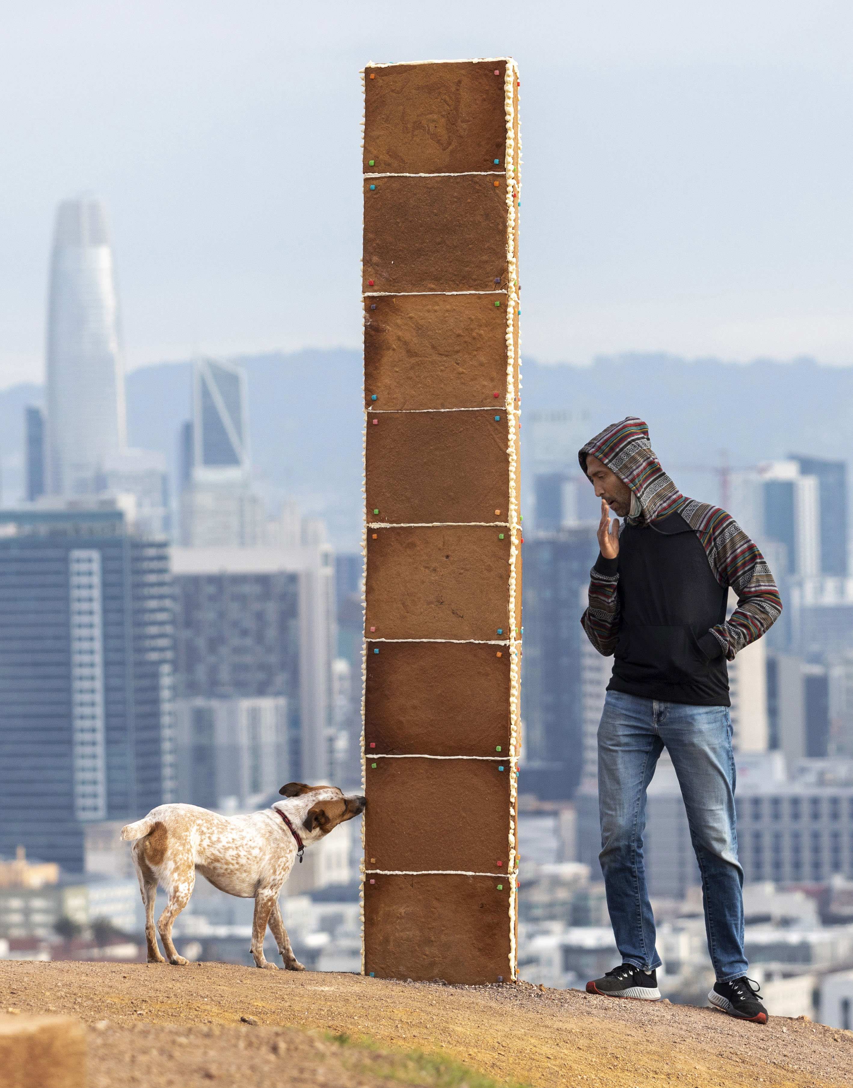 In true pop-up art fashion, an over 2m tall monolith made of gingerbread mysteriously appeared on a San Francisco hilltop on Christmas Day and collapsed the next day.