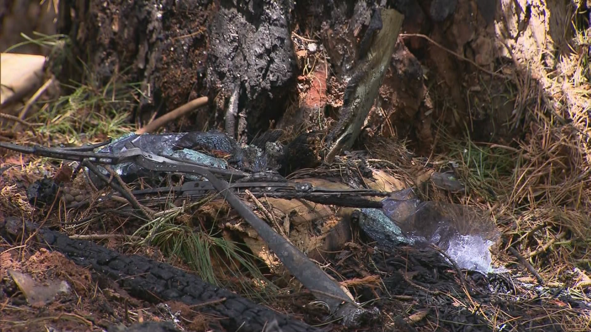 The car hit a tree and burst into flames, trapping the driver in his seat.