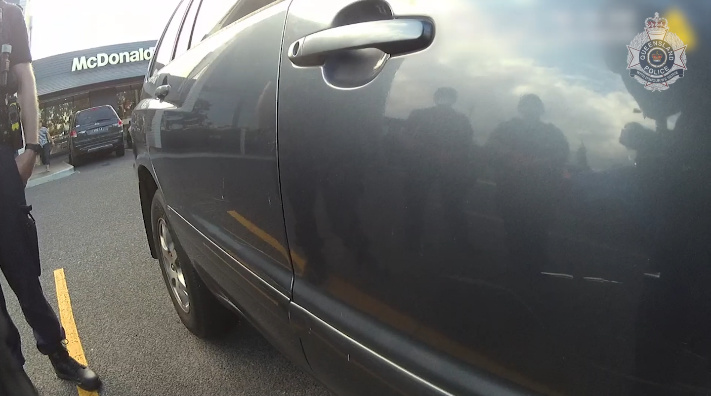 Police body cameras captured the moment officers conducting compliance checks caught the 34-year-old in the car park of the fast food outlet.