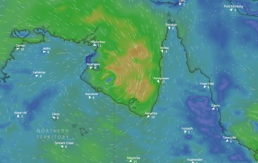 As a result, coastal and island communities between the NT/Queensland border and Kowanyama are being warned to expect wind gales over an area of 100 kilometres.