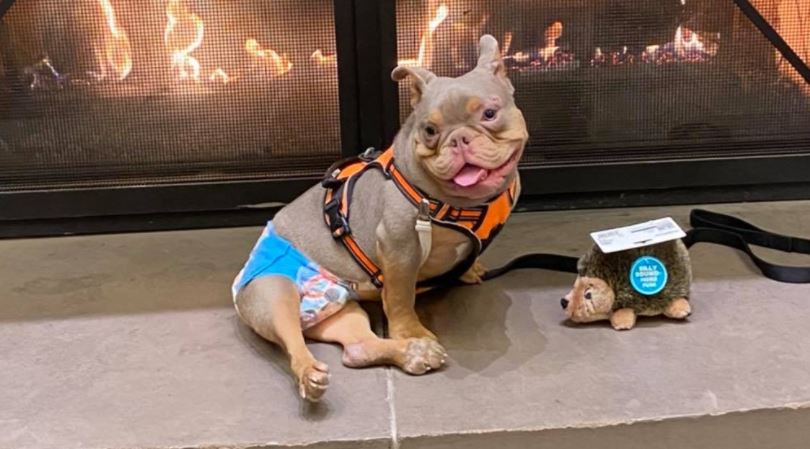 Cute little Jack is a nine-month-old, 13.5 kilogram American Bully pup who has spina bifida.