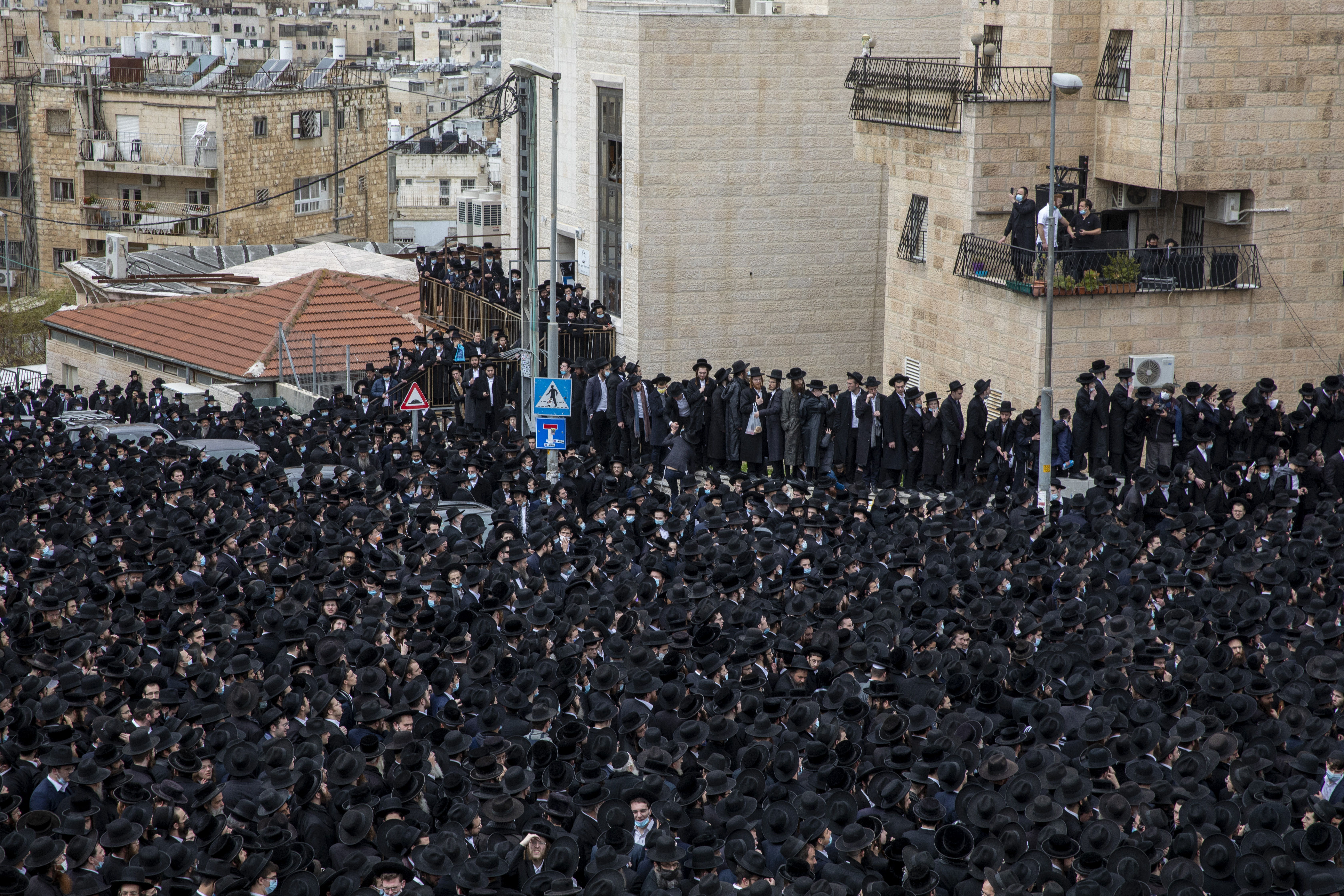 The funeral procession for Rabbi Meshulam Soloveitchik, who died at age 99, wound its way through the streets of Jerusalem yesterday in the latest display of ultra-Orthodox Israelis' refusal to honor coronavirus restrictions.