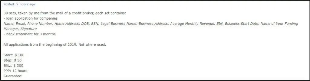 A complete fullz bundle would typically include some kind of national identity number, name, date of birth, a driver's license number, bank account statements, utility bills and sometimes even scans of passports or licenses.