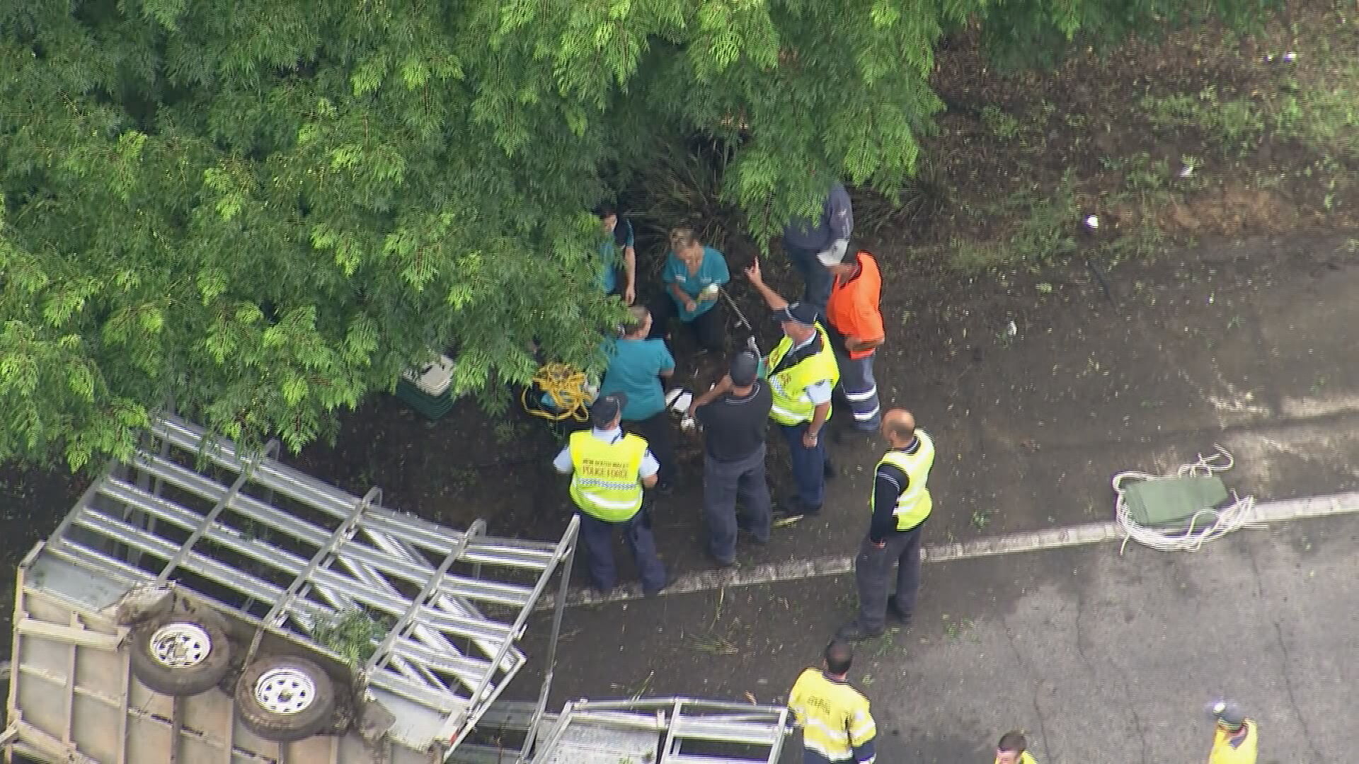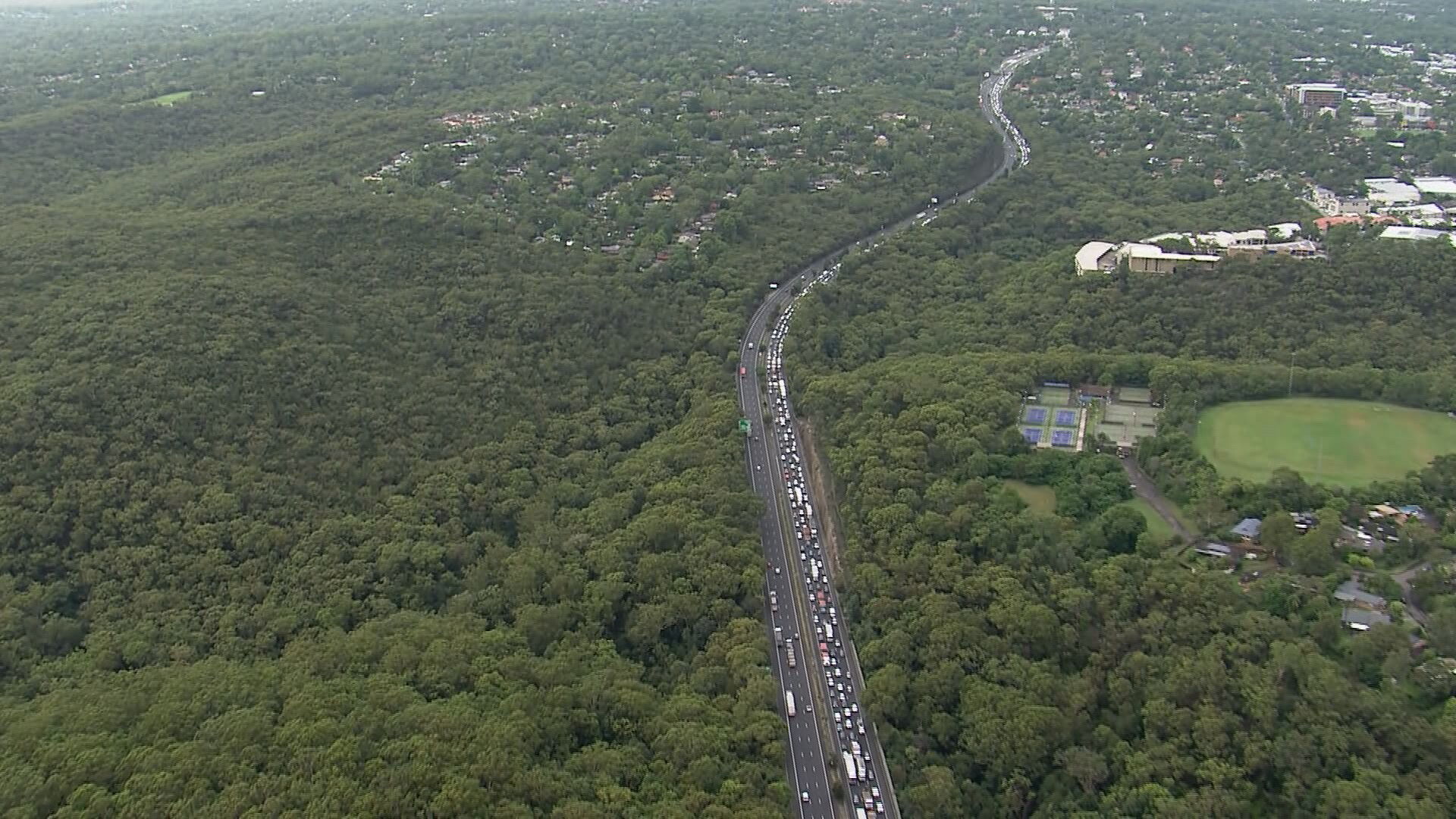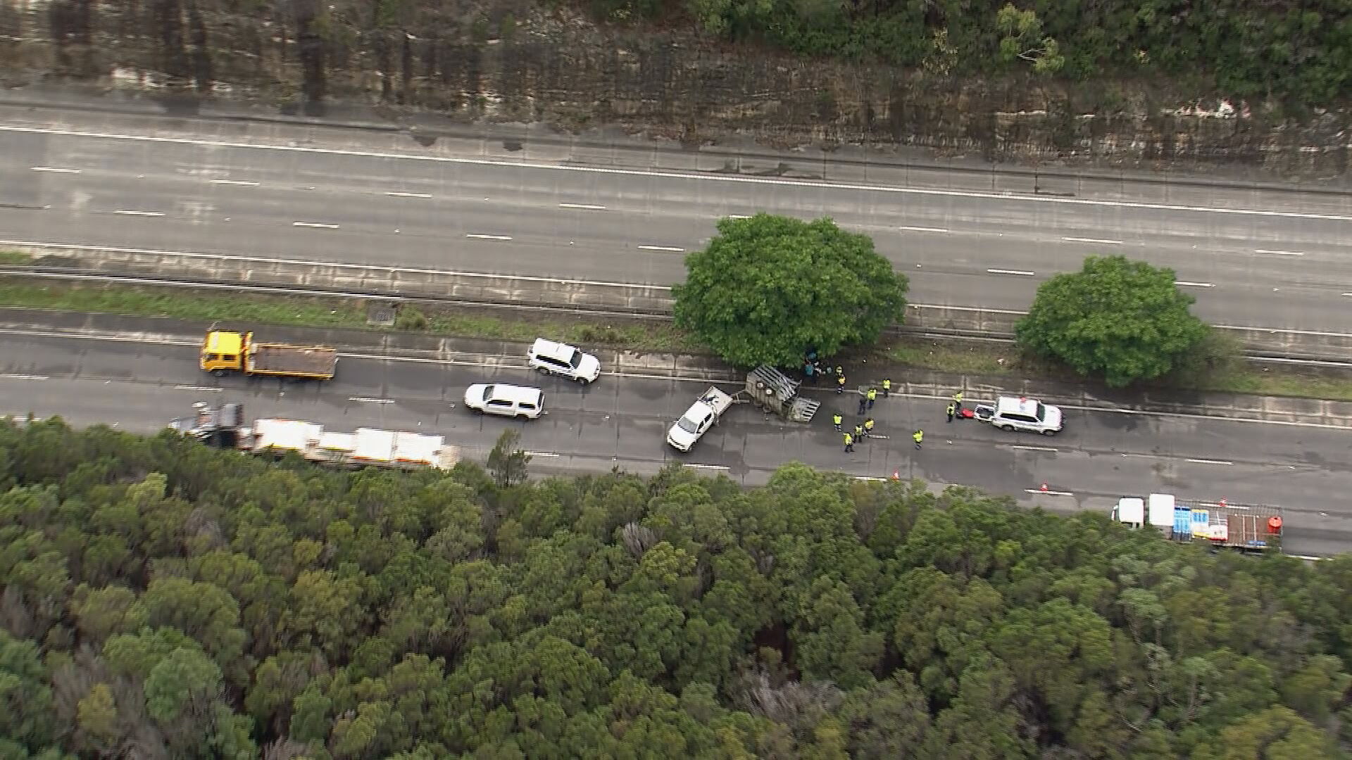 The ute has been travelling M1 northbound at Wahroonga when it rolled onto its side 200 metres north of the Kuring-Gai Chase overpass.