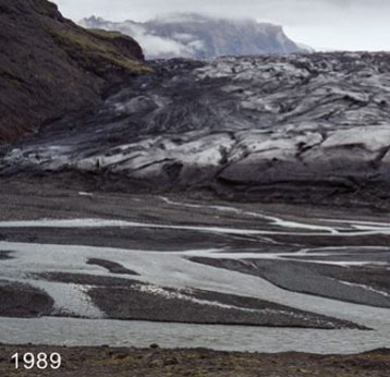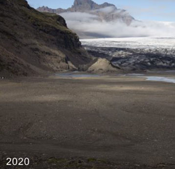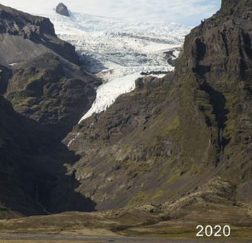 The photographs reveal the retreat of five of Vatnajökull's outlet glaciers – Fláajökull, Heinabergsjökull, Hoffellsjokull, Hólarjökull and Skaftafellsjökull.
