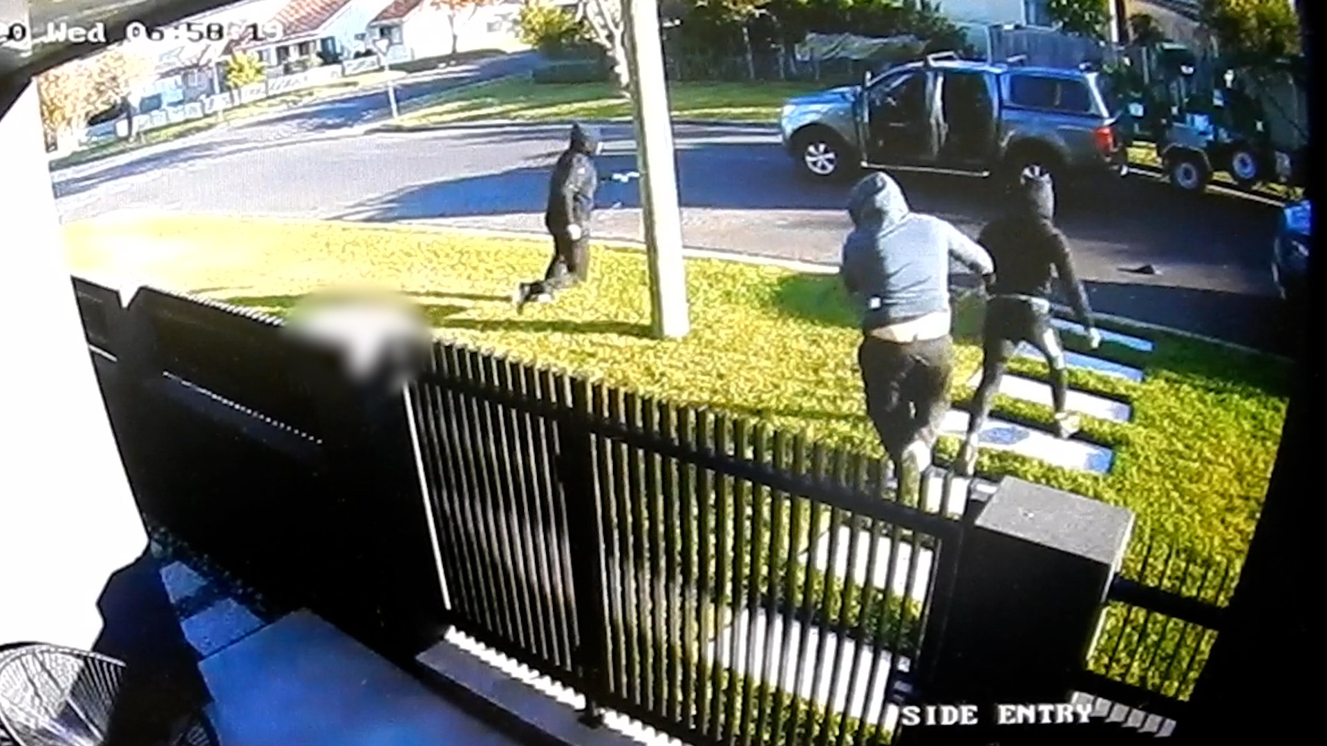The three were armed with baseball bats and were seen on CCTV chasing the man before assaulting him as he tried to escape.