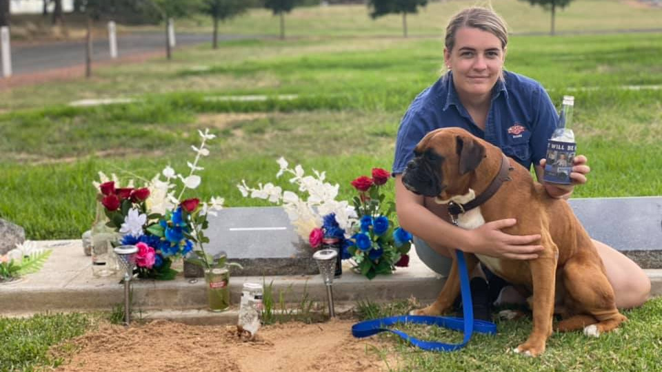 But instead of trying the knot in Fiji she spent the afternoon sitting by her fiancé Ethan Hunter's grave telling him how much she missed him.