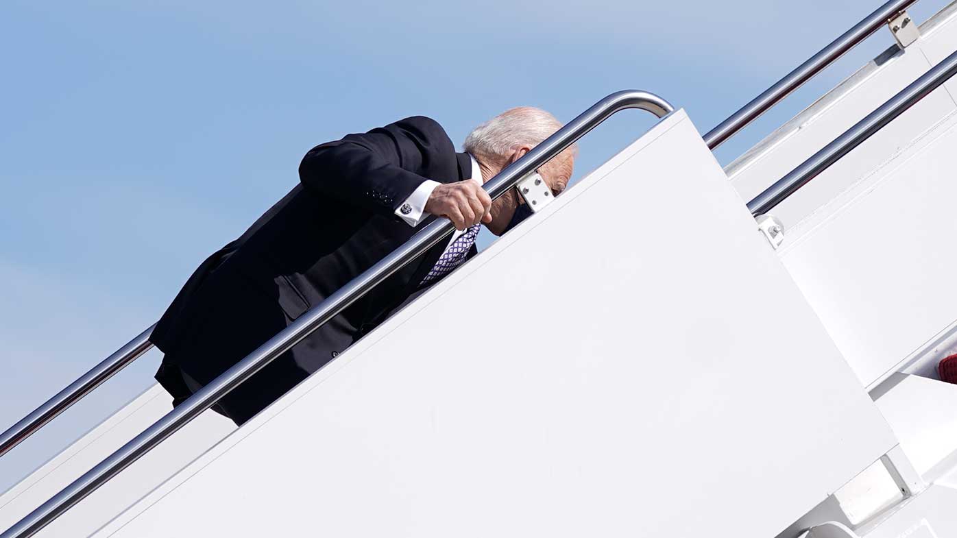 As Mr Biden, 78, bounded up the steps to the presidential plane, he slipped three times.