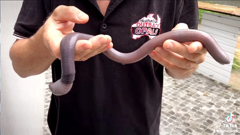 In a video posted online by Australian Outback Opals, the earthworm was found trying to get into a room at the nearby Tall Trees Motel by Darren Jack.