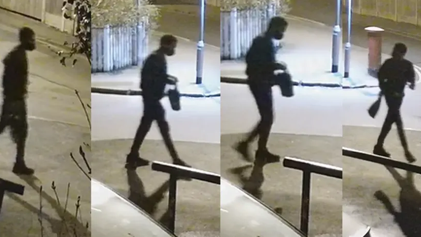 In the video the 19-year-old from west London is seen walking down a street in Loughton, Essex, wearing a dark face mask and dark clothing, while looking over his shoulder.