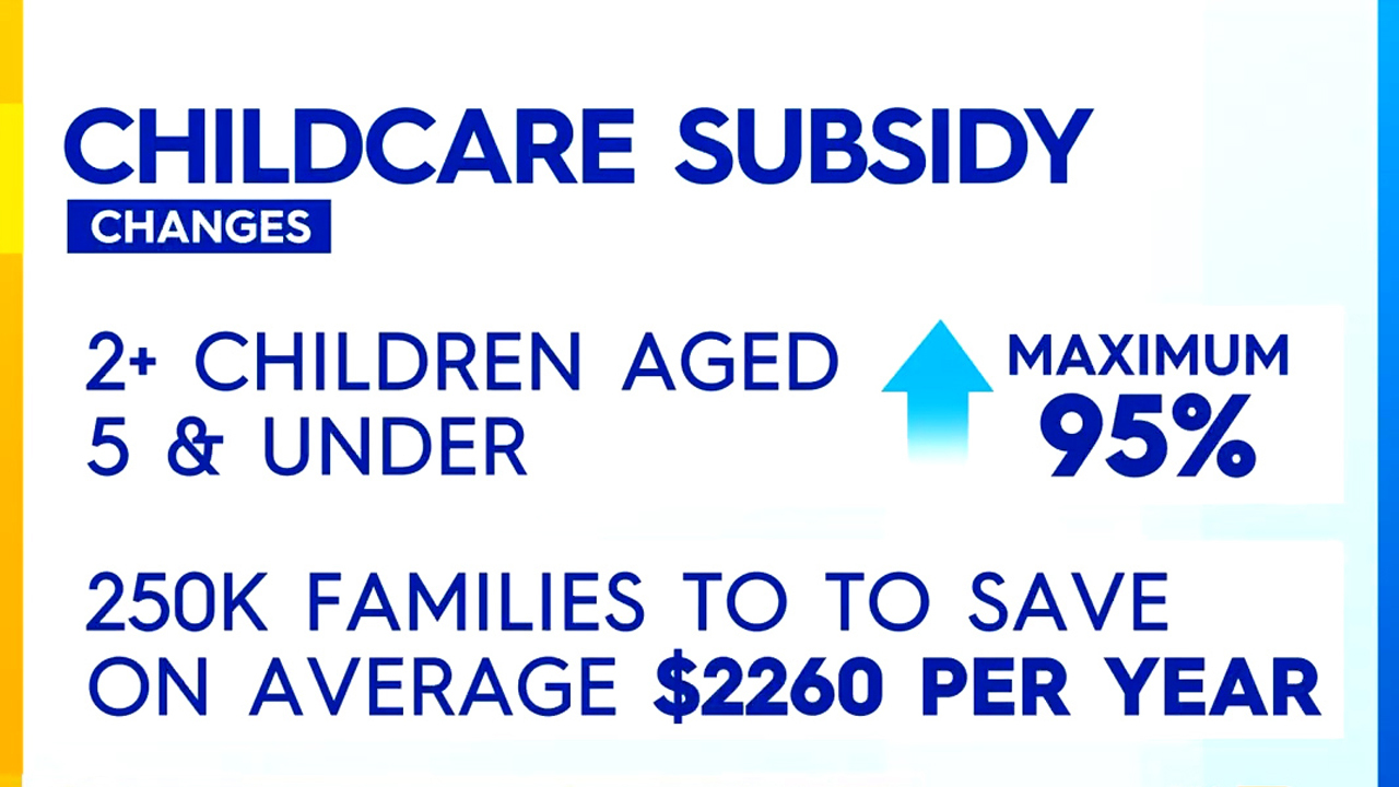 From July, the childcare subsidy for families with two or more children aged five and under will increase to a maximum of 95 per cent.