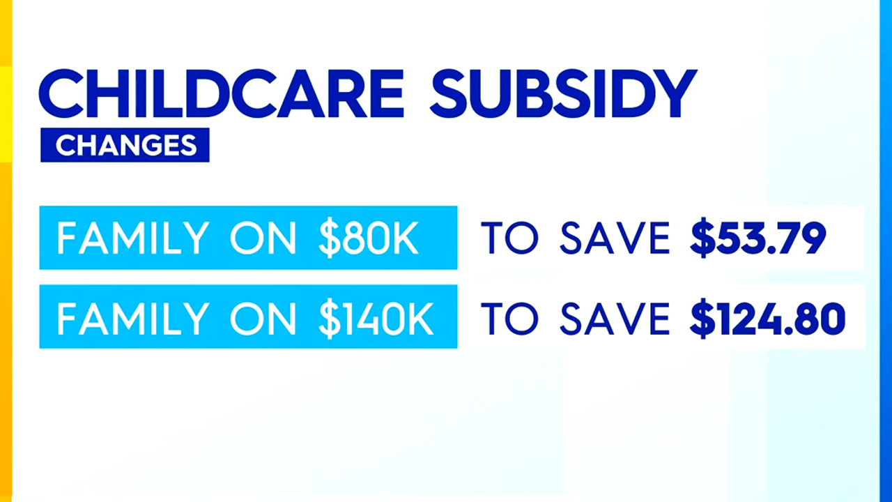 For example, a family on a combined income of $80,000 with two kids in childcare will save around $54 a week while families on a combined income of $140,000 will be around $125 a week better off.