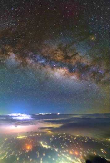 The first half of his time-lapse shows the Milky Way core above various active thunderstorms in the region of Lucknow, India.